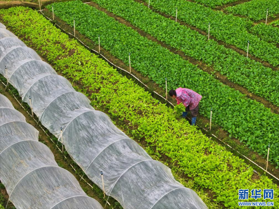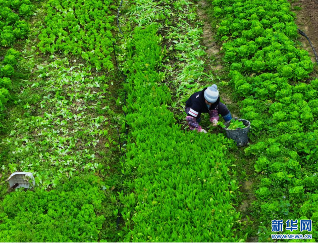 村民在广西南宁市兴宁区五塘镇蔬菜基地劳作(无人机照片)