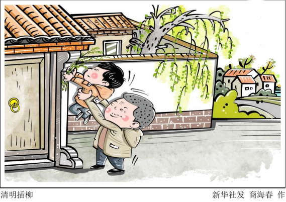 插柳也是清明节的传统习俗之一,据说是为了纪念“教民稼稿”的农事祖师神农氏,神农即炎帝,为农业之神。在这一天,人们会在门头上插柳、在屋檐下挂柳、妇女头上簪柳、男子身上佩柳、儿童吹柳管、墓前插柳挂纸钱,寓意迎接春天的到来,祈求家庭平安、吉祥。柳枝在历史文化发展中被赋予了驱邪避灾的意义,因此插柳也成了人们祈求家宅安宁的一种方式。