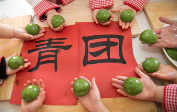 清明时节,江南一带有吃青团子的风俗习惯。青团子是用一种名叫“浆麦草”的野生植物捣烂后挤压出汁,倒入纯糯米粉中拌匀揉和后开始制作团子;团子的馅心是用细腻的糖豆沙制成,不同的地区馅心有所不同;在包馅时,另放入一小块糖猪油,团坯制好后,将它们入笼蒸熟,出笼时用毛刷将熟菜油均匀地刷在团子的表面,青团子油绿如玉,糯韧绵软,清香扑鼻,吃起来甜而不腻。
